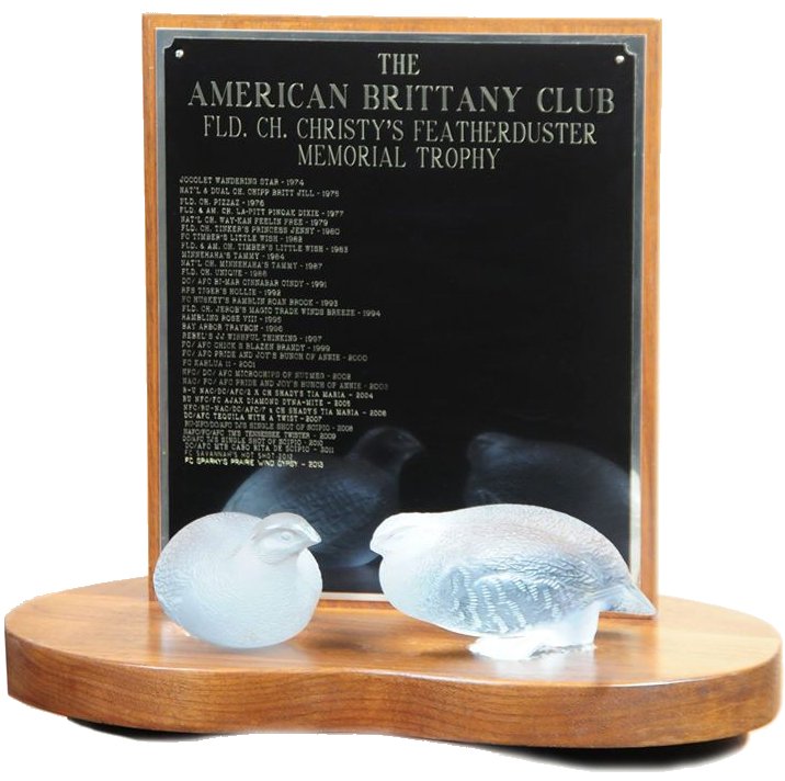 In honor of Dusty and the exceptional Brittany bitches who follow in her legacy, the Christy’s Feather Duster Trophy is awarded each year as a non-retireable rotating trophy. The owner of the winning bitch receives a keeper plaque or trophy, similar to other ABC perpetual awards.